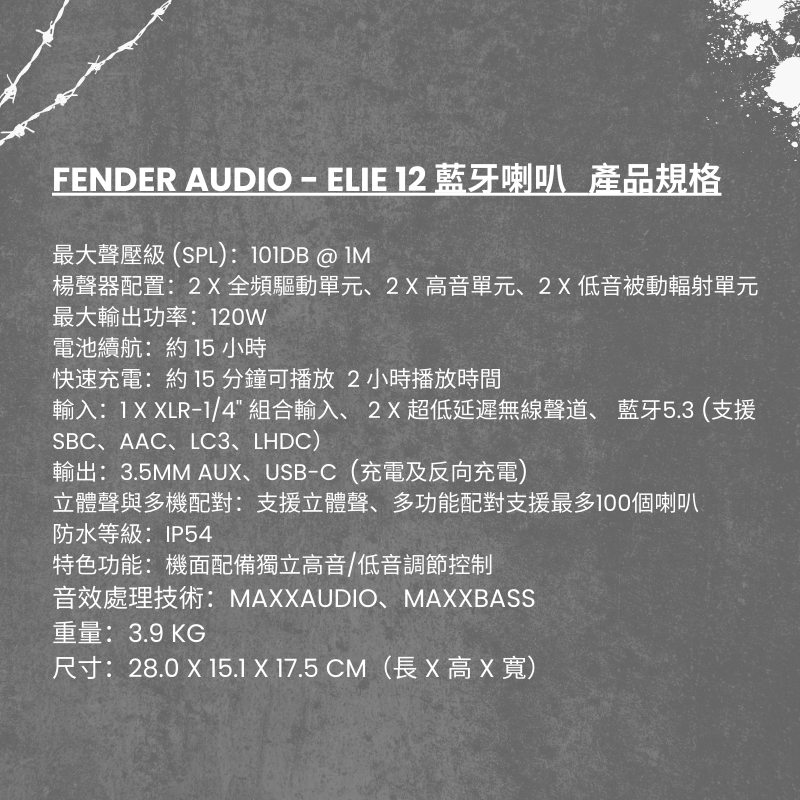 Fender 升級 ELIE 12 便攜喇叭 120W + 多源混音 + 逆向充電 表演/派對/創作首選