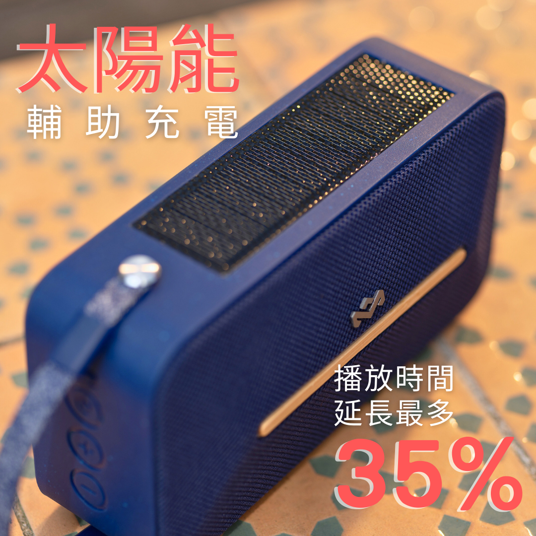 可持續發展是 House of Marley 品牌的核心理念之一, Rise Up Solar 率先加入太陽能充電功能,除了一般透過 USB-C 充電,機頂內置了太陽能充電板,在陽光或其他人造光源底下可自動充電,在猛烈陽光下可延長播放時數多達 35% ,而本身喇叭亦擁有長達 14 小時的電力,在出海、露營等戶外活動時可避免電量不足的情況。