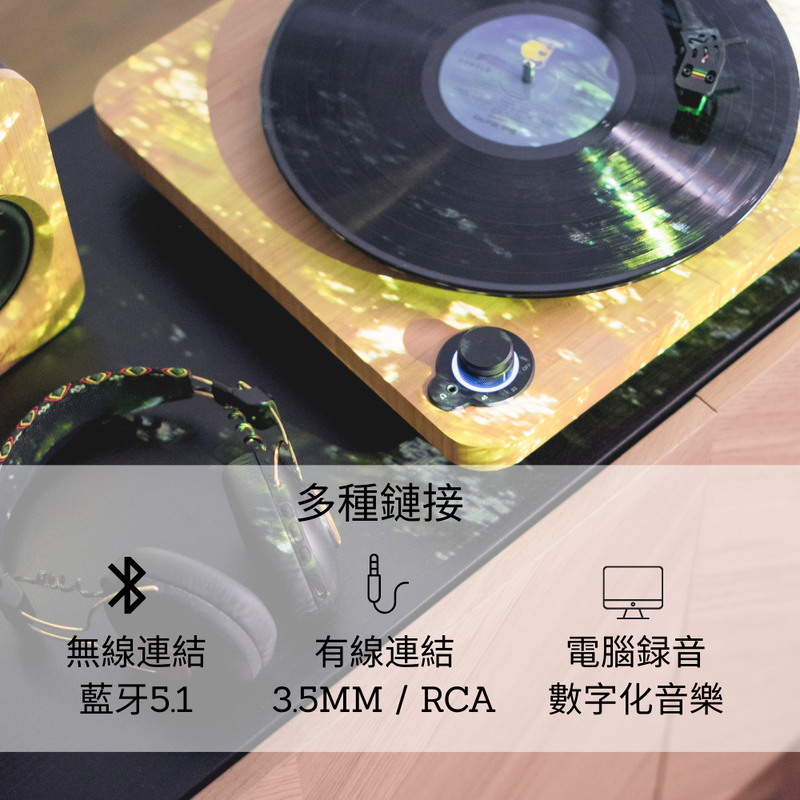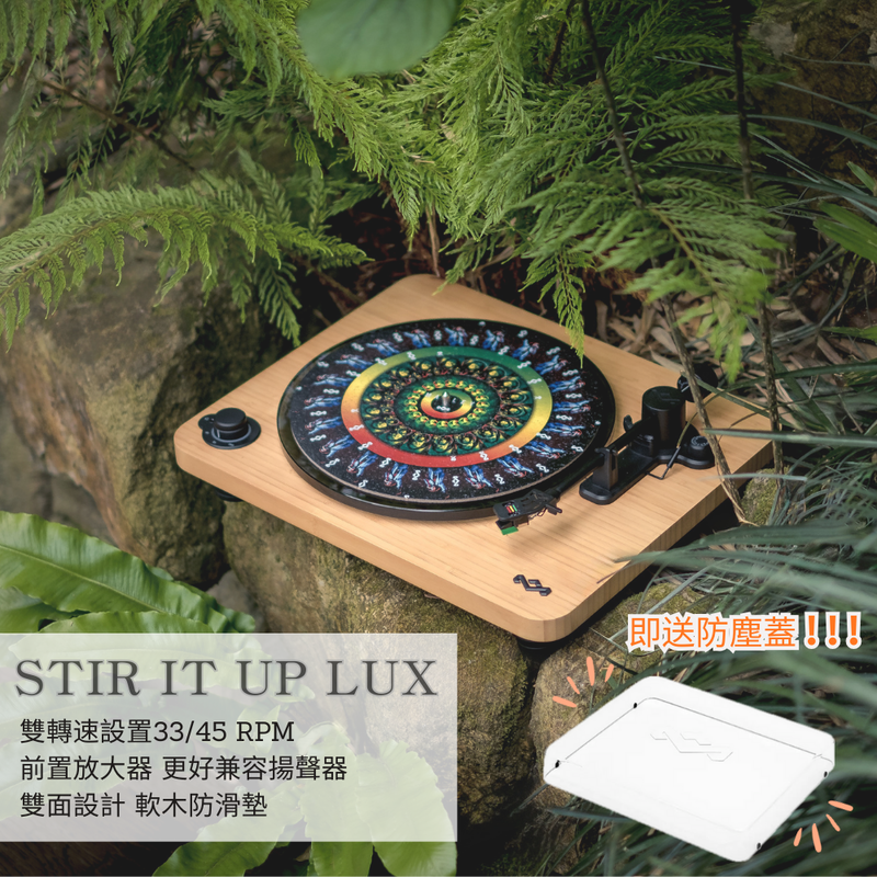 Stir It Up Lux 利用一體式的再生竹製作底座,配搭黑色鋁唱臂、鋁唱頭殼、玻璃轉盤、軟木盤墊,擁有同級唱盤罕有的古典味道,可以輕易成為家中高貴的擺設,高密度又重身的竹座底有助吸收摩打運作時的震動,穩固的玻璃更有助維持穩定轉速,為唱盤運作締造穩定的環境,播放唱片聲音更清脆。