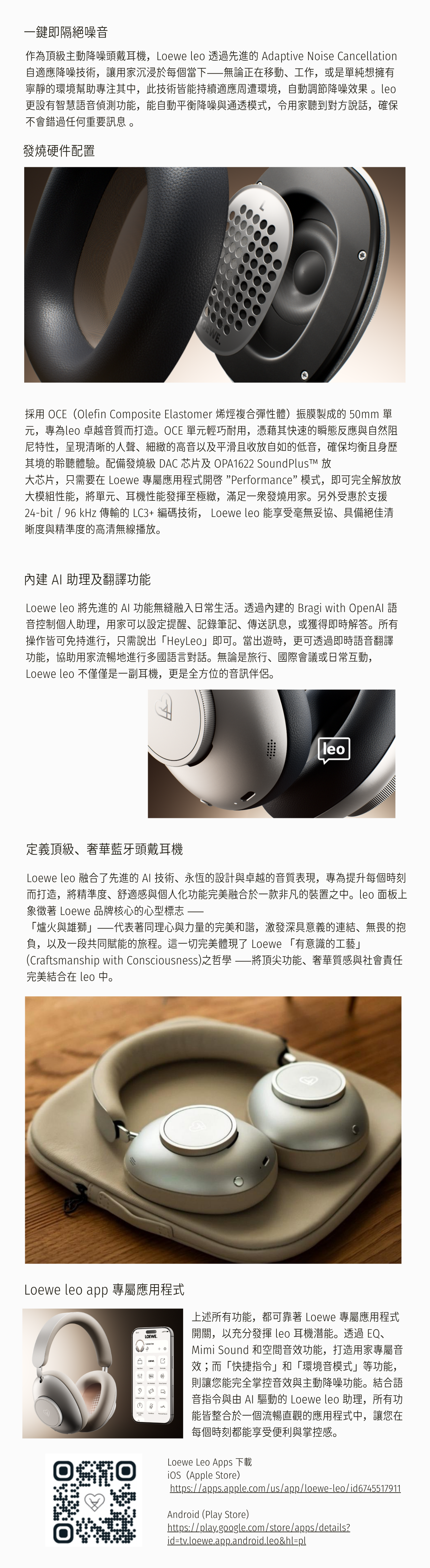 ・ 擁有 LEO 語音助手支援、即時 AI 翻譯、多點連接技術及配戴偵測等強大智能功能