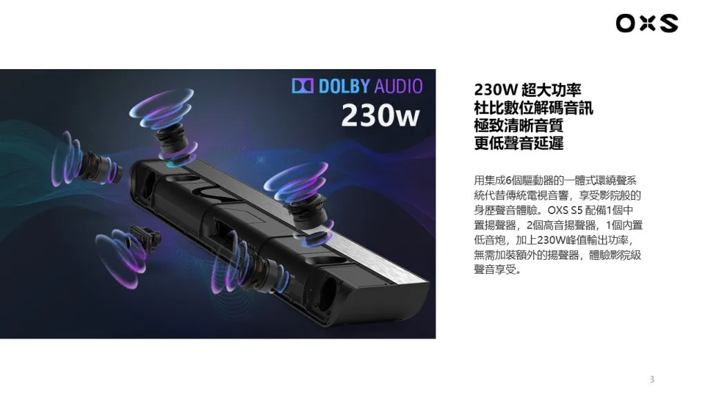 .超大230W 輸出功率,內置低音及天空聲道