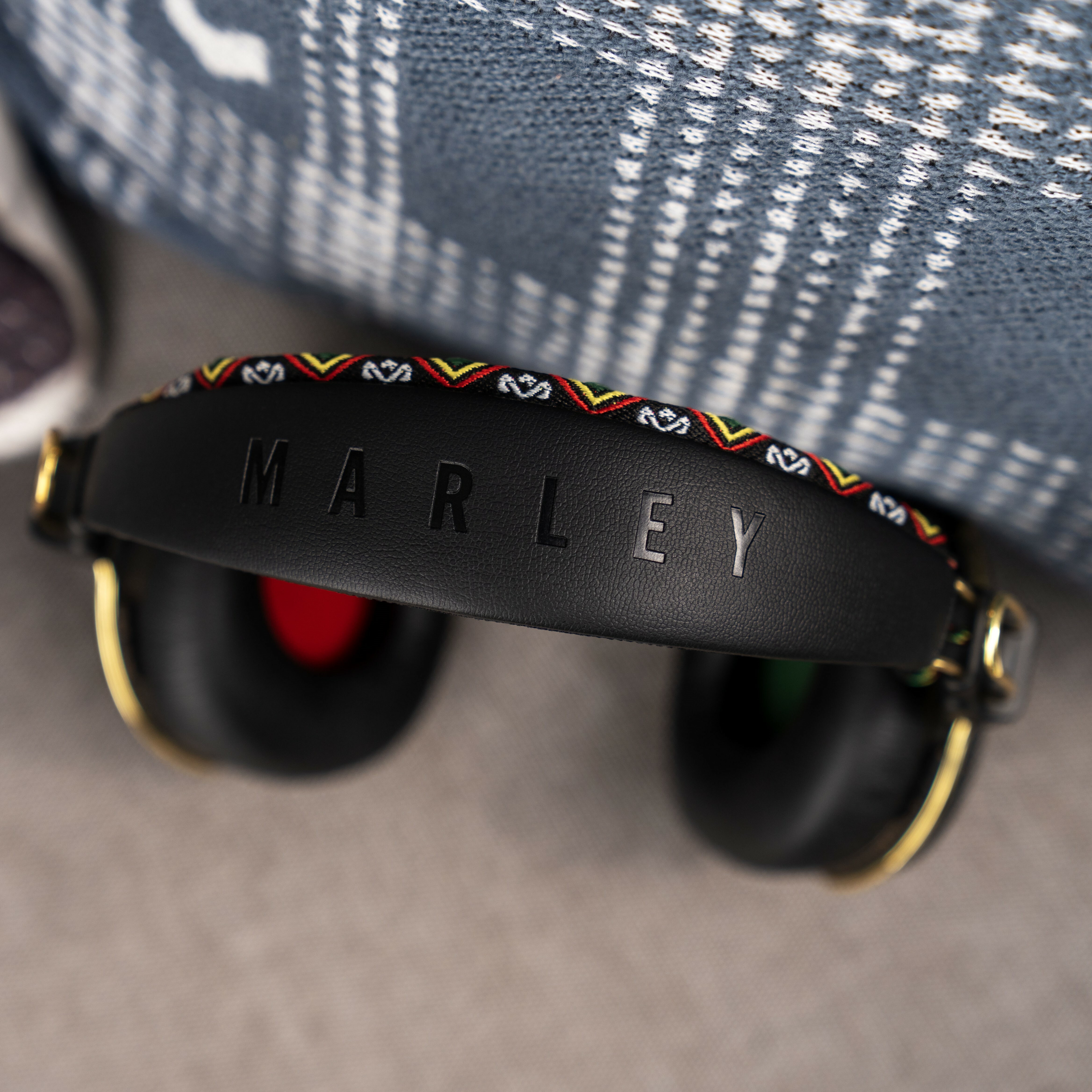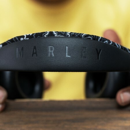 Positive Vibration Frequency 藍牙耳機擁有輕巧機身,加厚的耳墊觸感柔軟,佩戴倍感舒適。機身運用多種環保物料製作,包括鋁金屬耳罩、耳罩上的 FSC® 環保認證木飾板、包裹頭樑的 REWIND® 再生尼龍布,為細小的耳機增添多種質感,而牙買加 Rasta 配色更加破沈悶,同時突顯雷鬼音樂精神。